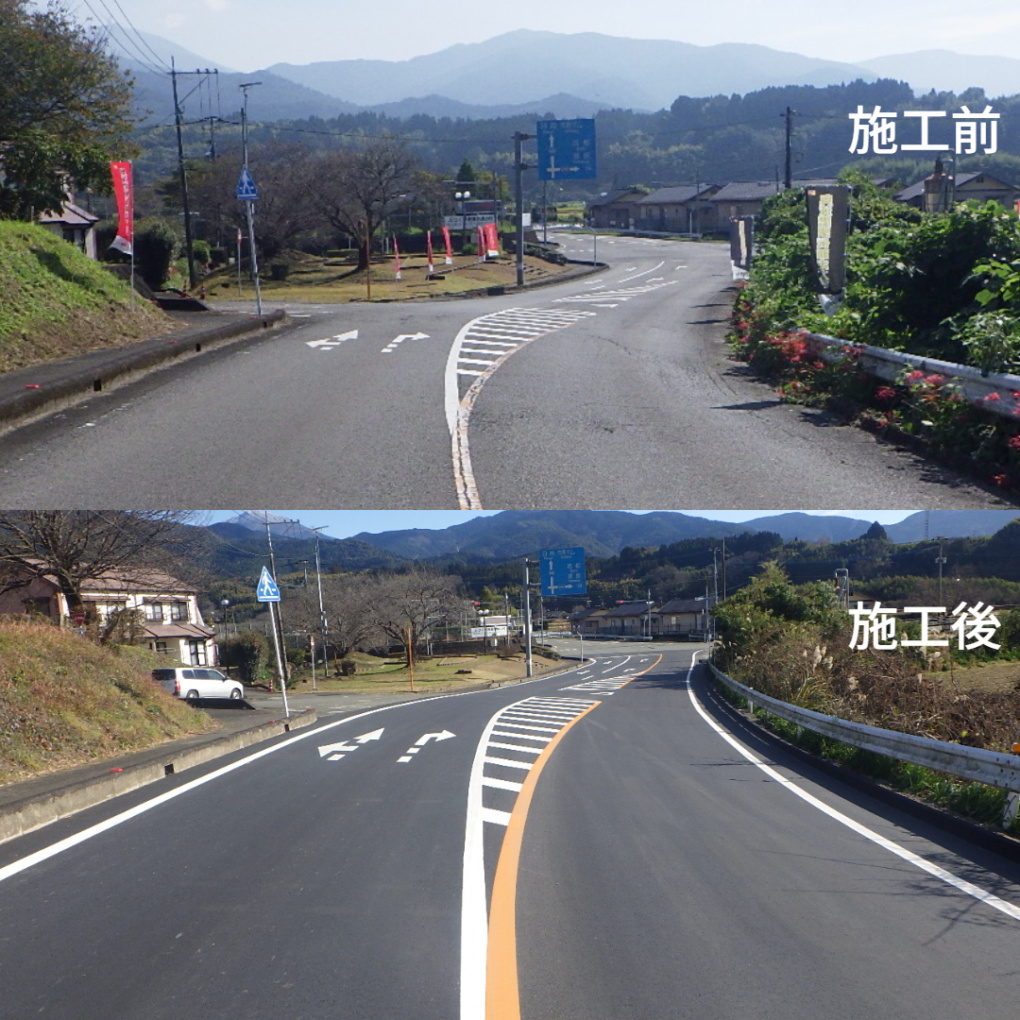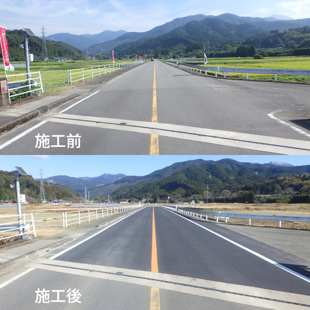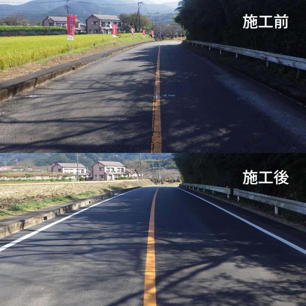 | 工事概要 | 舗装工事 施工延長279.25m 表層工2469㎡ 区画線工1041.5m 縁石工105m |