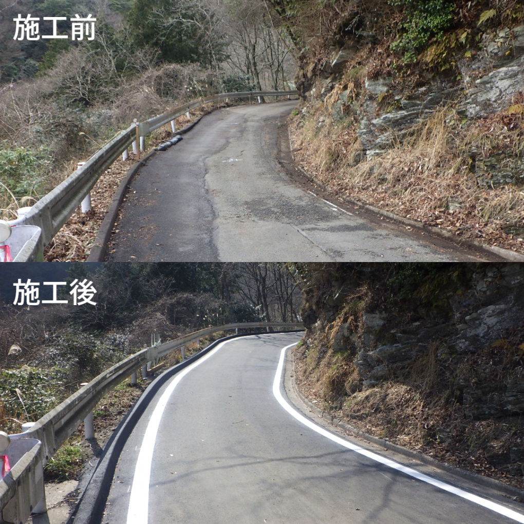 | 工事概要 | 舗装補修工 施工延長492.75m 表層工1,900㎡ 区画線工969m 縁石工(アスカーブ)44m |