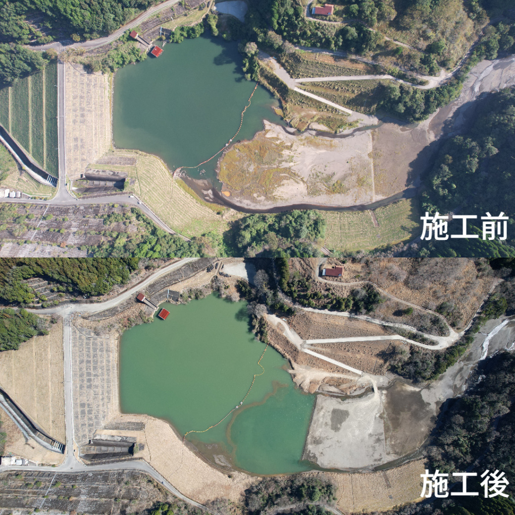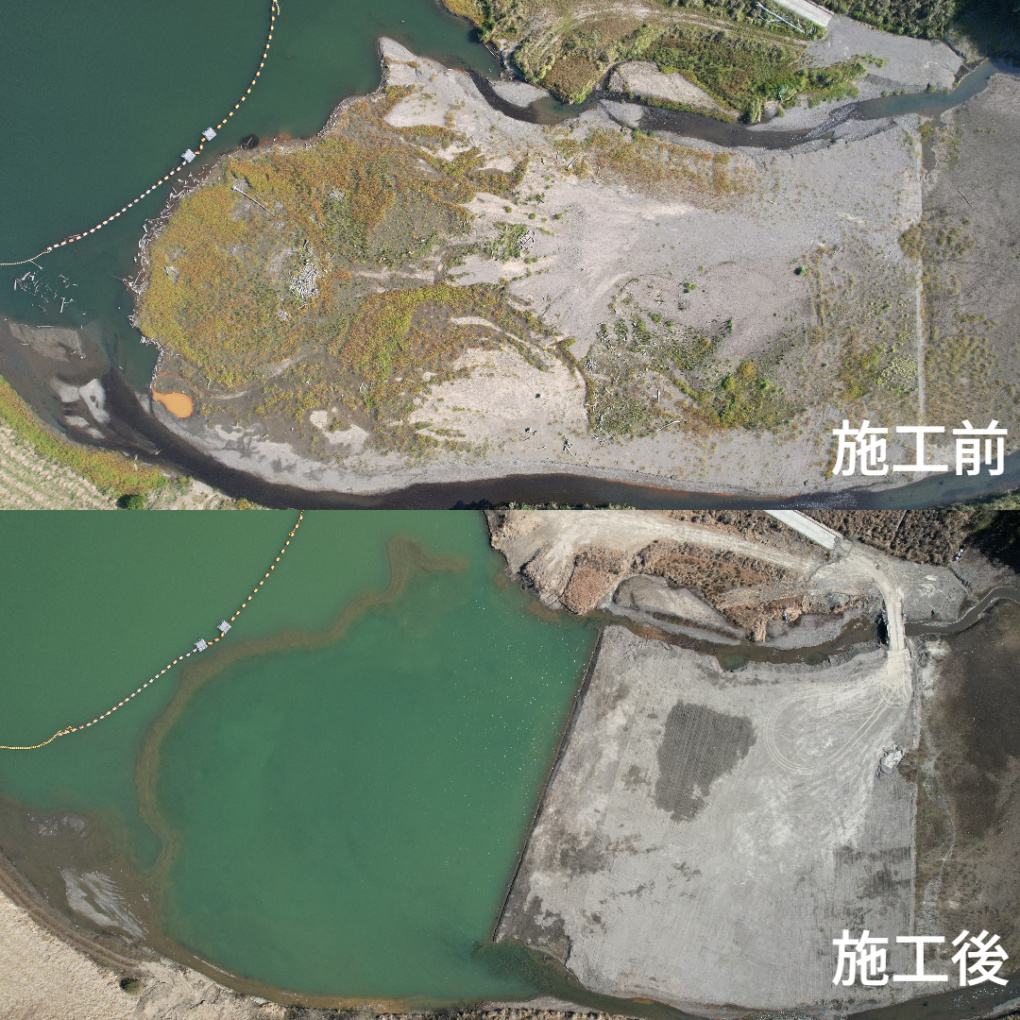 | 工事概要 | 堆砂除去工25,760㎥(掘削(ICT)2,545㎥ 掘削(ICT)水中掘削23,215㎥) 流木撤去工一式 |